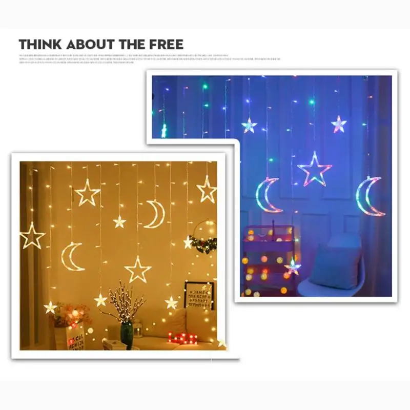220V LED Moon Star Christmas Lights Outdoor Garland String Fairy Curtain Light For Home Wedding Par