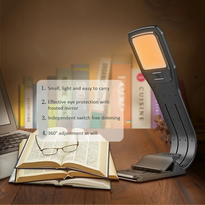 LED USB Charge Book Lights Portable Dimmable Fold Bending Adjust Clip on Read Light Night Lamp Desk