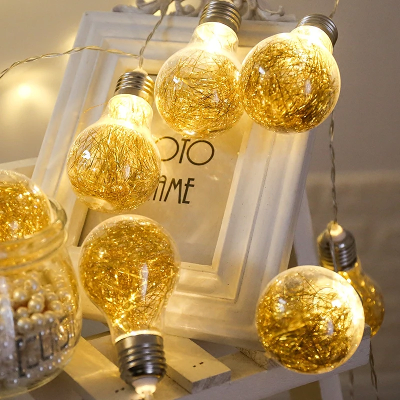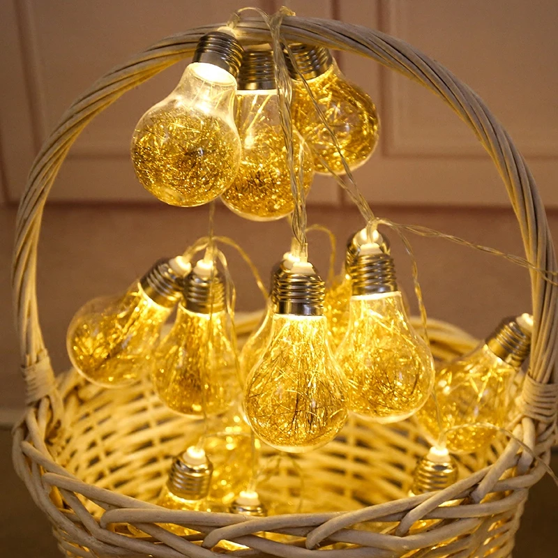 10 Led Fairy Gold Transparent Bulb Battery Operated String Lights 1m LED Decoration For Christmas G