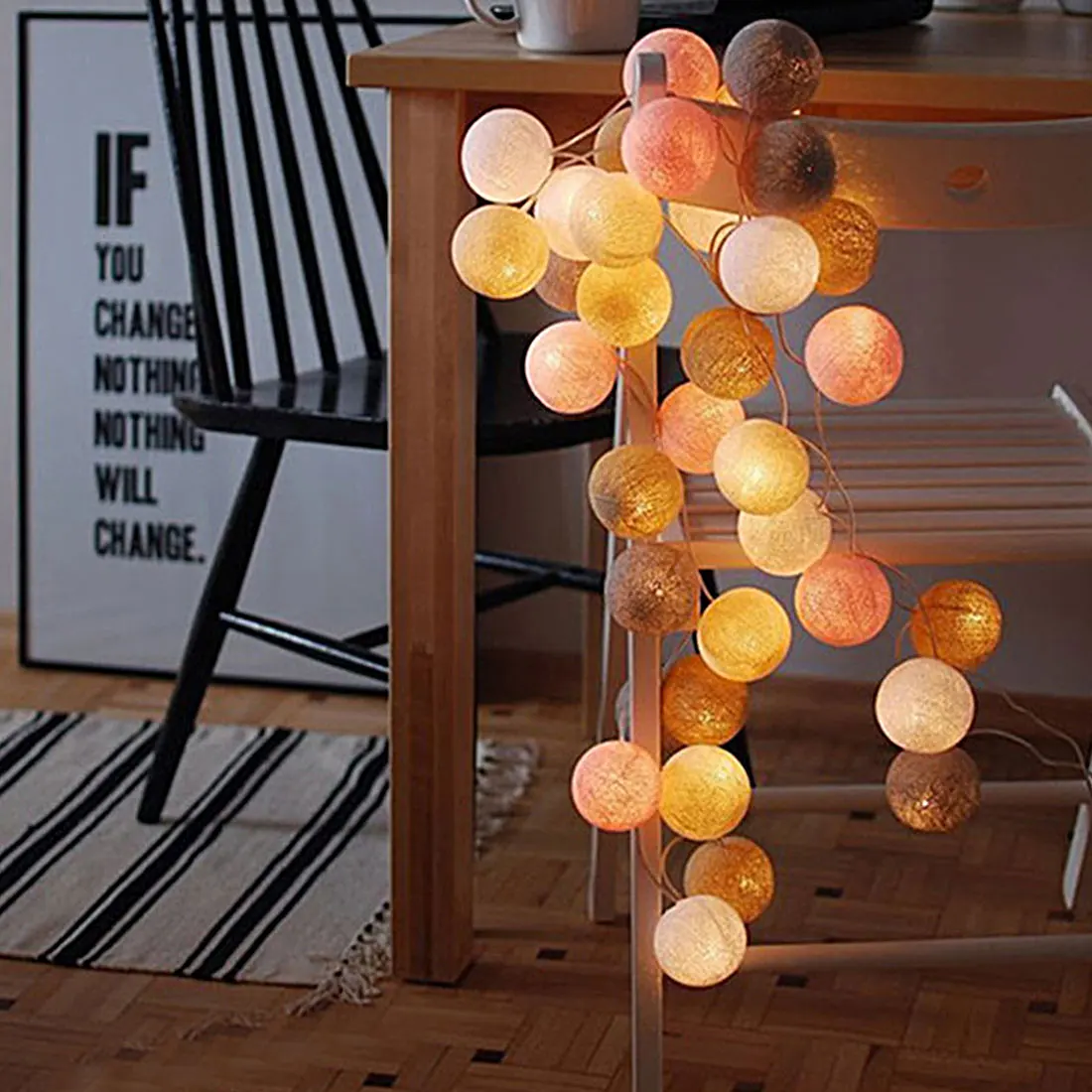 Cotton Ball Decorative String Light Handmade DIY Thread 20 Balls String Lamp Battery/AC Fairy Light