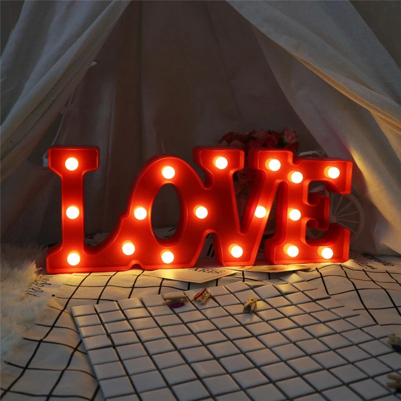 Romantic 3D LOVE LED Letter Sign Night Light Marquee Warm Light Table Lamp Lanterns Nightlights for
