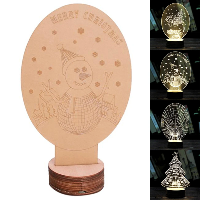 IKVVT DIY 3D USB Night Light Lamp Snowman Christmas Tree Elk Bedroom Home Decor