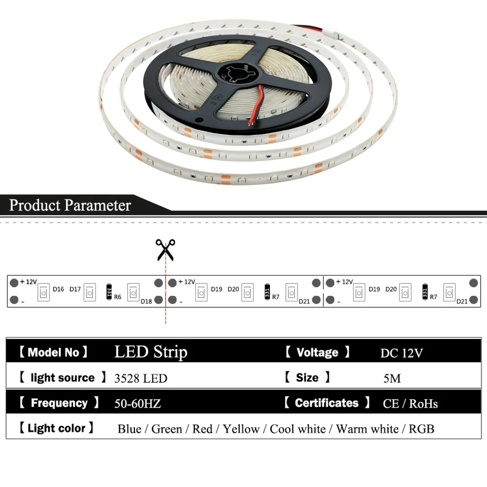 12V 2835 RGB LED Strip Lights Monochrome DC12V 60LED/M LED Flexible Strip Light Waterproof Indoor L