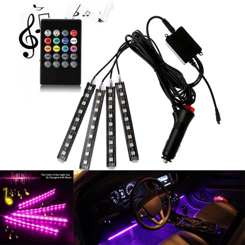 Car Styling RGB LED Strip Light Decorative Atmosphere Lamp Car Interior Music remote Light Club Dis